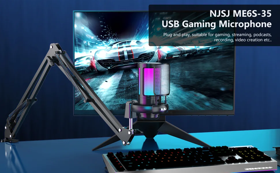 NJSJ ME6S-35 Gaming Microphone Kit , USB Podcast Condenser Mic with Boom Arm for Computer/PS4/PS5/PC Gamer Youtuber