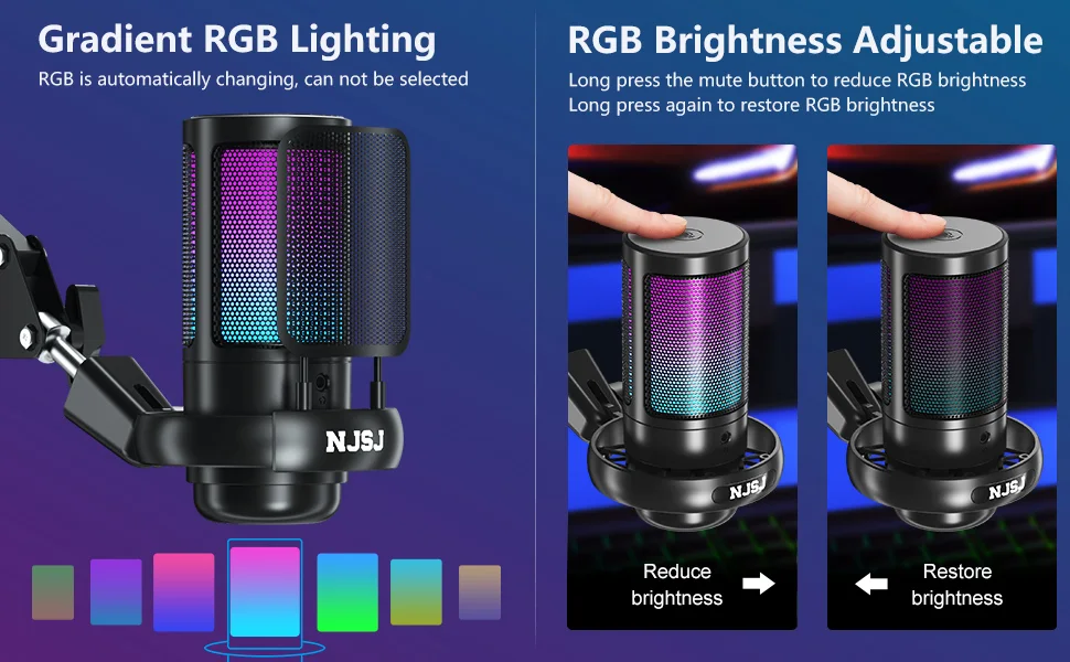 Our PC gaming microphone kit is a nice addition to your gaming set up. Loud and clear call quality that will surprise your teammates. The cyclic changing RGB lights will enhance your gaming atmosphere and immerse you in it. Adding on to that the condenser microphone has gain control, tap to mute and headphones jack provides monitoring function. The adjustable boom arm and microphone mount are quite flexible allowing you to orient the microphone where you want it.